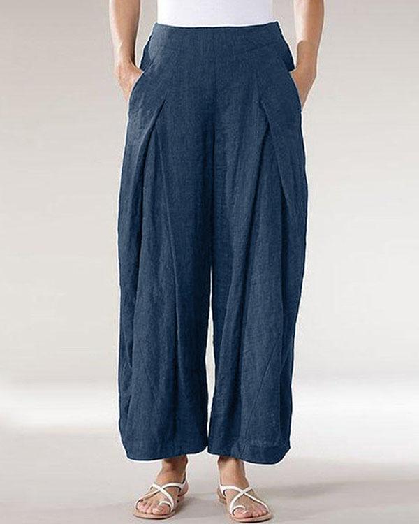 Casual Solid Patchwork Wide Leg Linen Pants