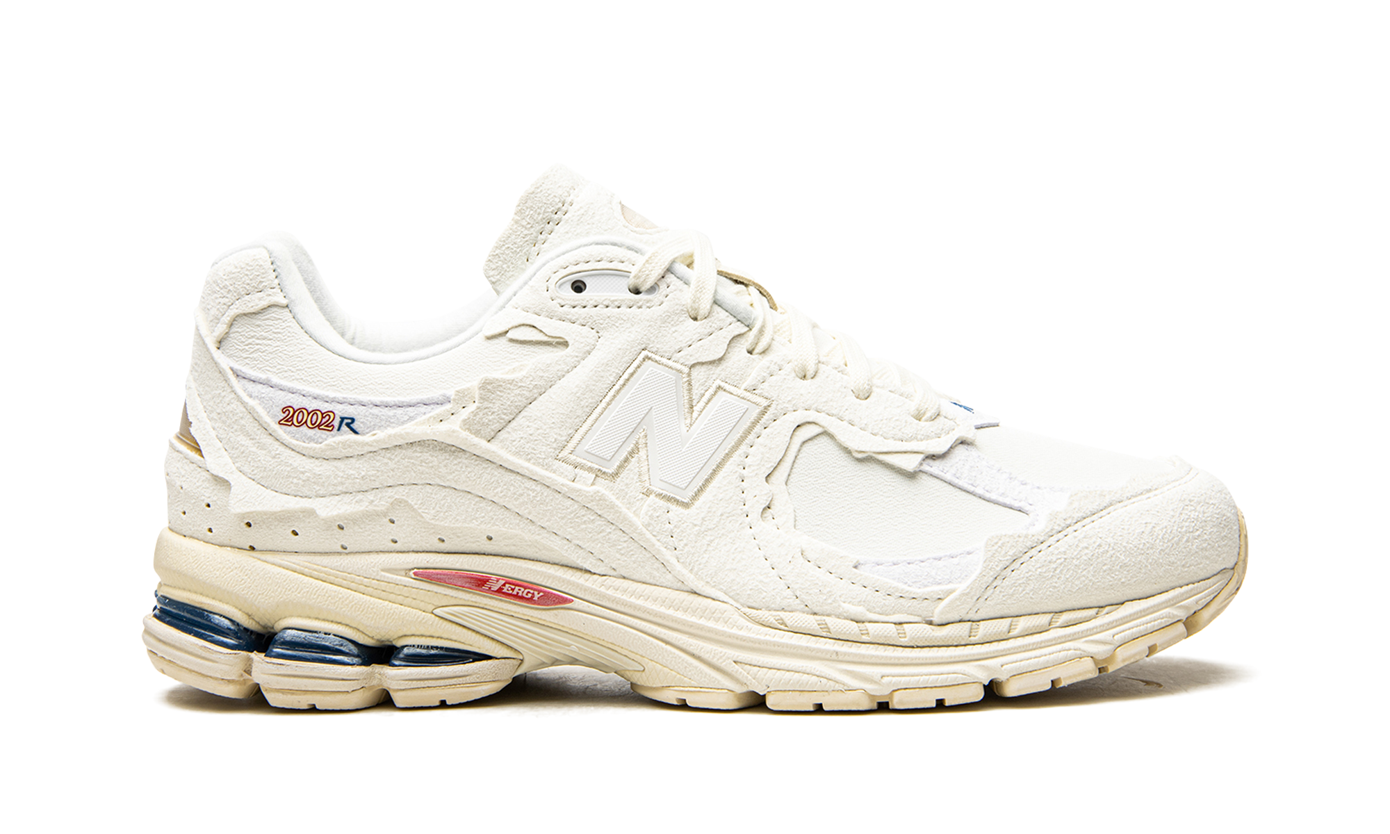 White leather 2002R "Protection Pack" sneakers from NEW BALANCE featuring embroidered logo to the side, contrasting panel detail, round toe, front lace-up fastening, branded insole and flat rubber sole. These styles are supplied by a premium sneaker marketplace. Stocking only the most sought-after footwear, they source and curate some of the most hard to find sneakers from around the world..