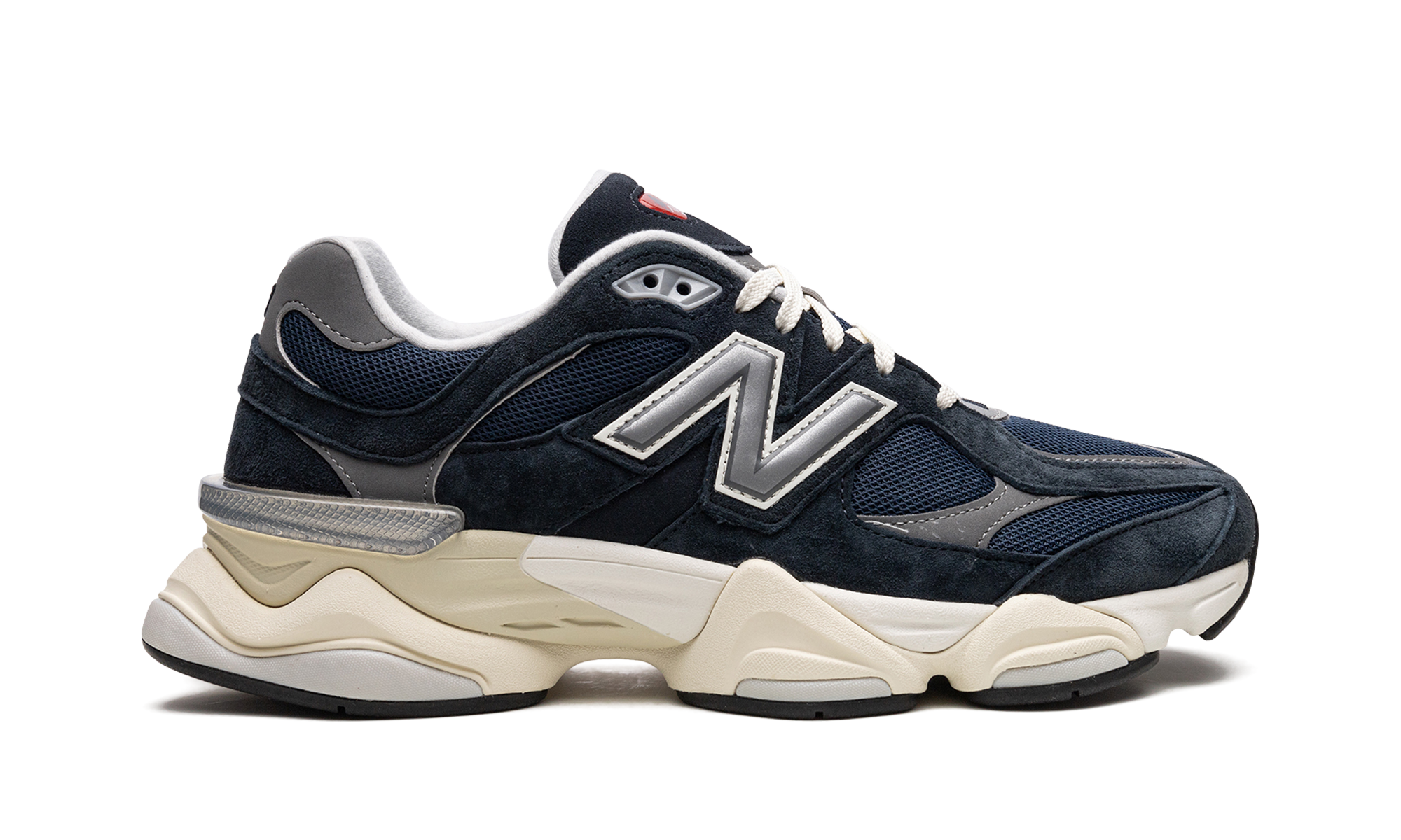 The New Balance 9060 “Navy” is a navy blue colorway of the lifestyle shoe that was released by the Boston footwear company in 2022. The New Balance 9060 was introduced by Chicago based streetwear and footwear designer Joe Freshgoods as part of his “Conversations Among Us” project, and then was released in a series of colorways thereafter, including this “Navy” design. The shoe features a navy mesh construction with tonal suede overlays throughout. Dark grey leather overlays appear on the forefoot and heel. An oversized silver “N” logo is found on the side. Grey “NB” branding is embroidered on the heel and “NB 9060” detailing is located on the tongue. A chunky cream and white midsole completes the look. Release date: January 14, 2023