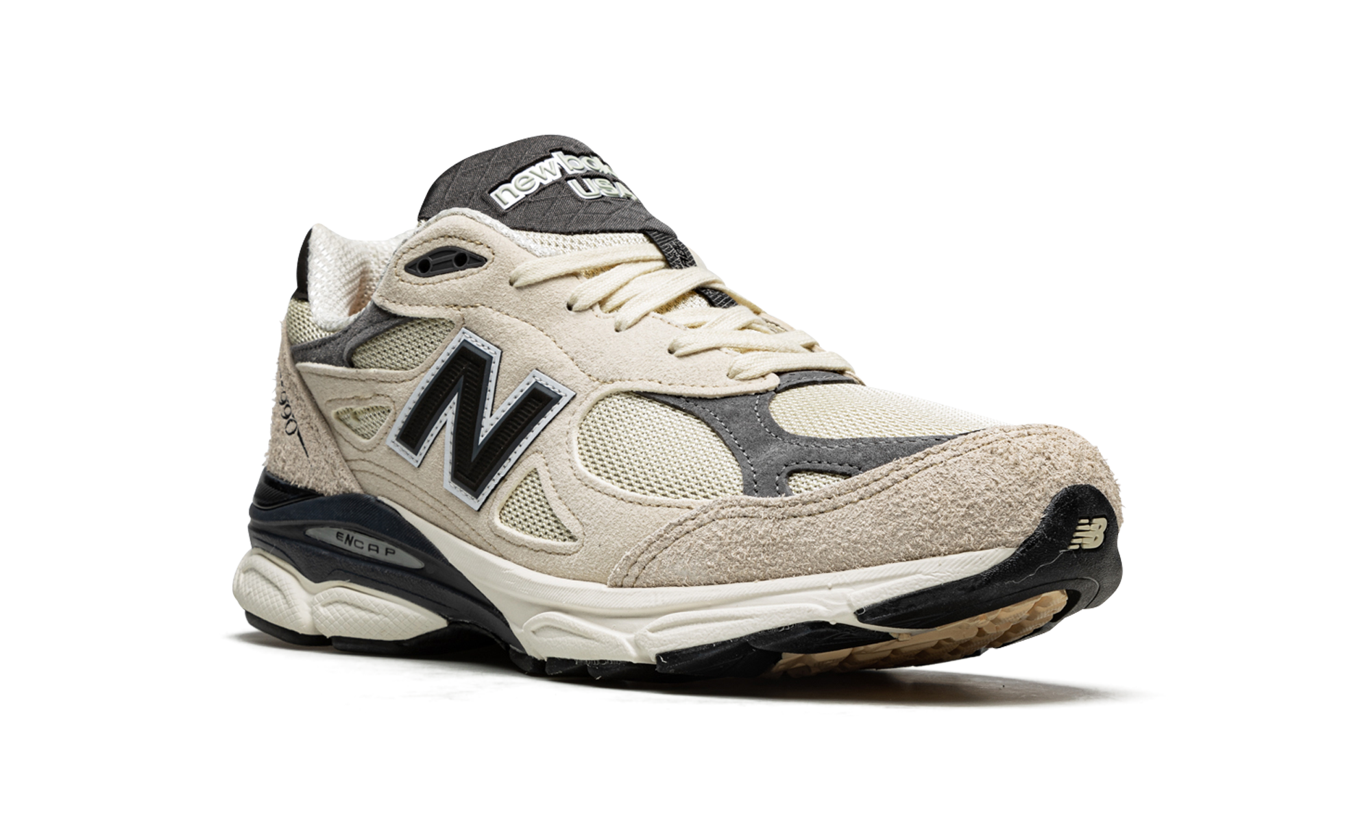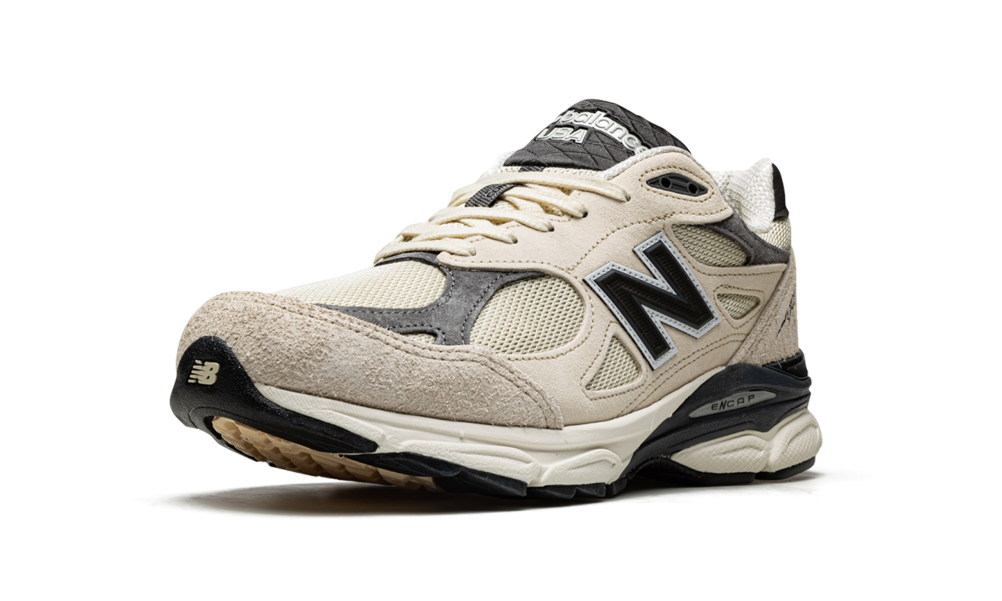 The New Balance 990 V3 Made in USA “Moonbeam” is one of multiple silhouettes included in the popular footwear and fashion designer’s debut “Made in the USA” line with New Balance. The much-anticipated partnership between Santis, who is the founder and lead designer of Aime Leon Dore, and New Balance was announced in 2021 after Aime Leon Dore and New Balance’s 550 collaborations brought much attention to both brands beginning in 2020. The “Moonbeam” is one of several colorways of the 990 V3 Made in USA from Santis’s first-ever collection with New Balance. As far as its design, the shoe features a cream mesh base with light grey hairy suede overlays. Additional grey suede overlays can be found on the toe and on the collar. A black “N” logo appears on both sides of the shoe. Black “990” branding is located on the lateral side of the heel, and a small “NB” logo appears on the back of the shoe. “Made in USA” branding is found on the grey waffle tongue. The shoe rides on an ENCAP cushioned midsole. Release date: June 30, 2022