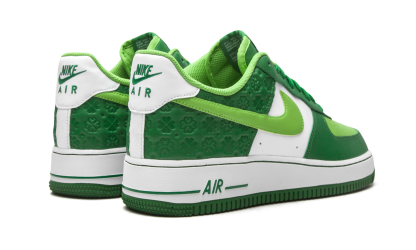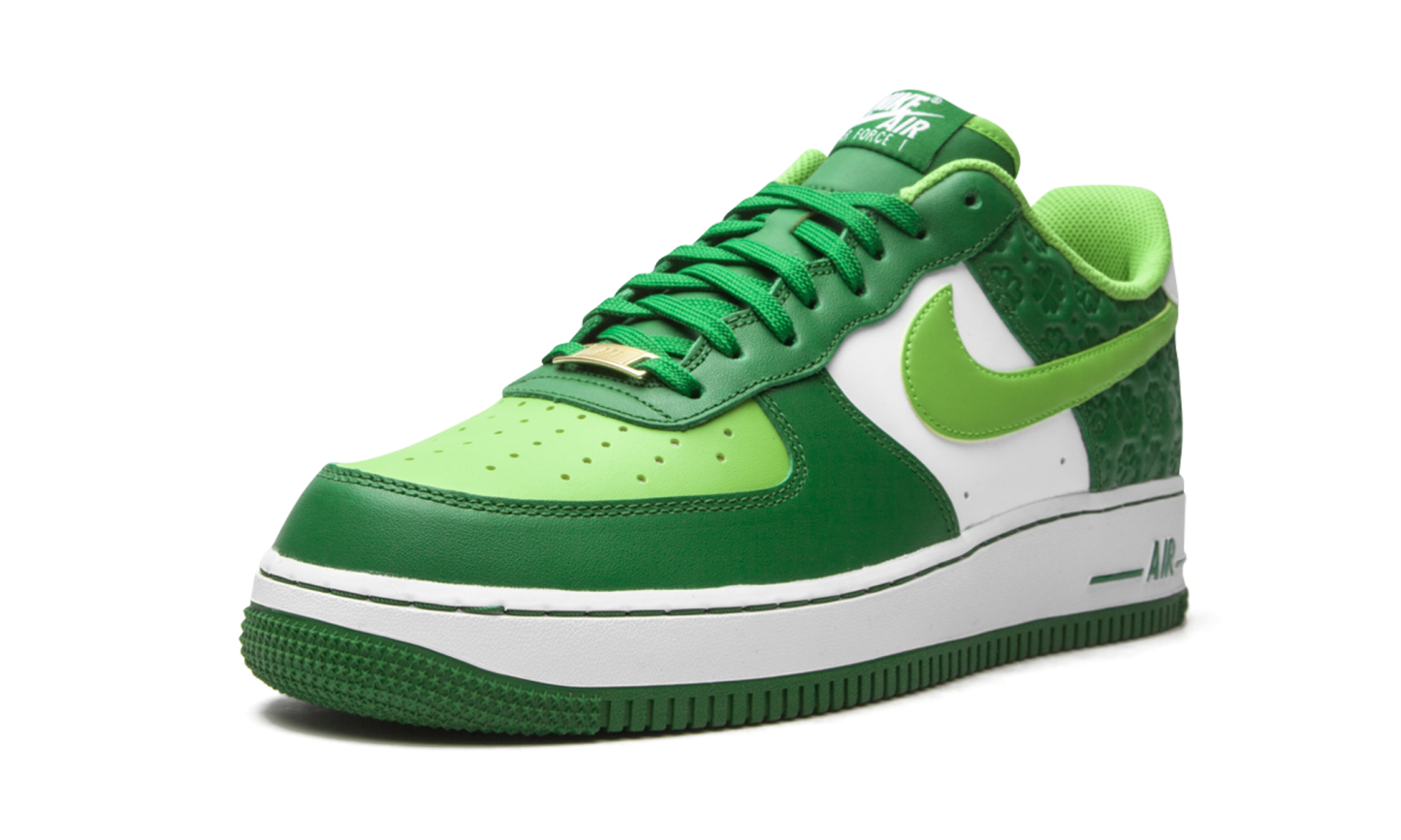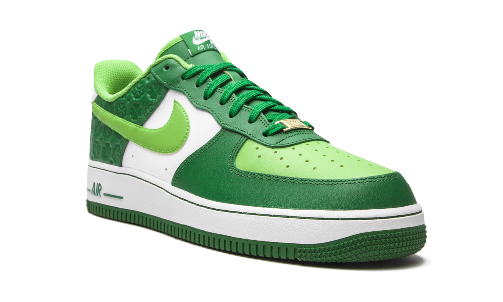 The Nike Air Force 1 Low “St. Patrick’s Day 2021” is a special colorway of the popular lifestyle shoe dedicated to the cultural holiday. In addition to this Air Force 1, the “St. Patrick’s Day” theme also appeared on an Air Max 90 in March 2021 as a continuation of Nike’s honoring of the festive holiday. A hue of light green leather can be found on the perforated toe and Swoosh branding on either side of the shoe. The overlaid panels on the eyelets and forefoot are dressed in dark green leather detailing. Four-leaf clovers are printed in an all-over embossed pattern on the lateral heel panel and green “Nike Air” embroidery appears on the back of the shoe. The St. Patrick’s Day theme is progressed with green laces layered over a green mesh tongue. Underfoot, the white midsole displays green “Air” insignia on the lateral heel and the outsole is painted, you guessed it, green, to finish off the look. Release date: March 12, 2021. St Patrick's 2021