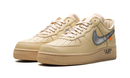 Experience a fresh piece of design history with the Off-White x Nike Air Force 1 "Sesame". This remarkable sneaker, first previewed at a private exhibition during Miami's Art Basel, has been a highly coveted item among collectors for years. The design stays true to Virgil Abloh's unmistakable aesthetic, featuring exposed foam at the sockliner and tongue, a crinkled metallic silver Swoosh with overstitching, and the signature zip tie hang tag. The sophisticated tonal "Sesame" shade provides a versatile canvas for these deconstructed elements, making it both a statement piece and a wearable work of art. Virgil Abloh - Sesame