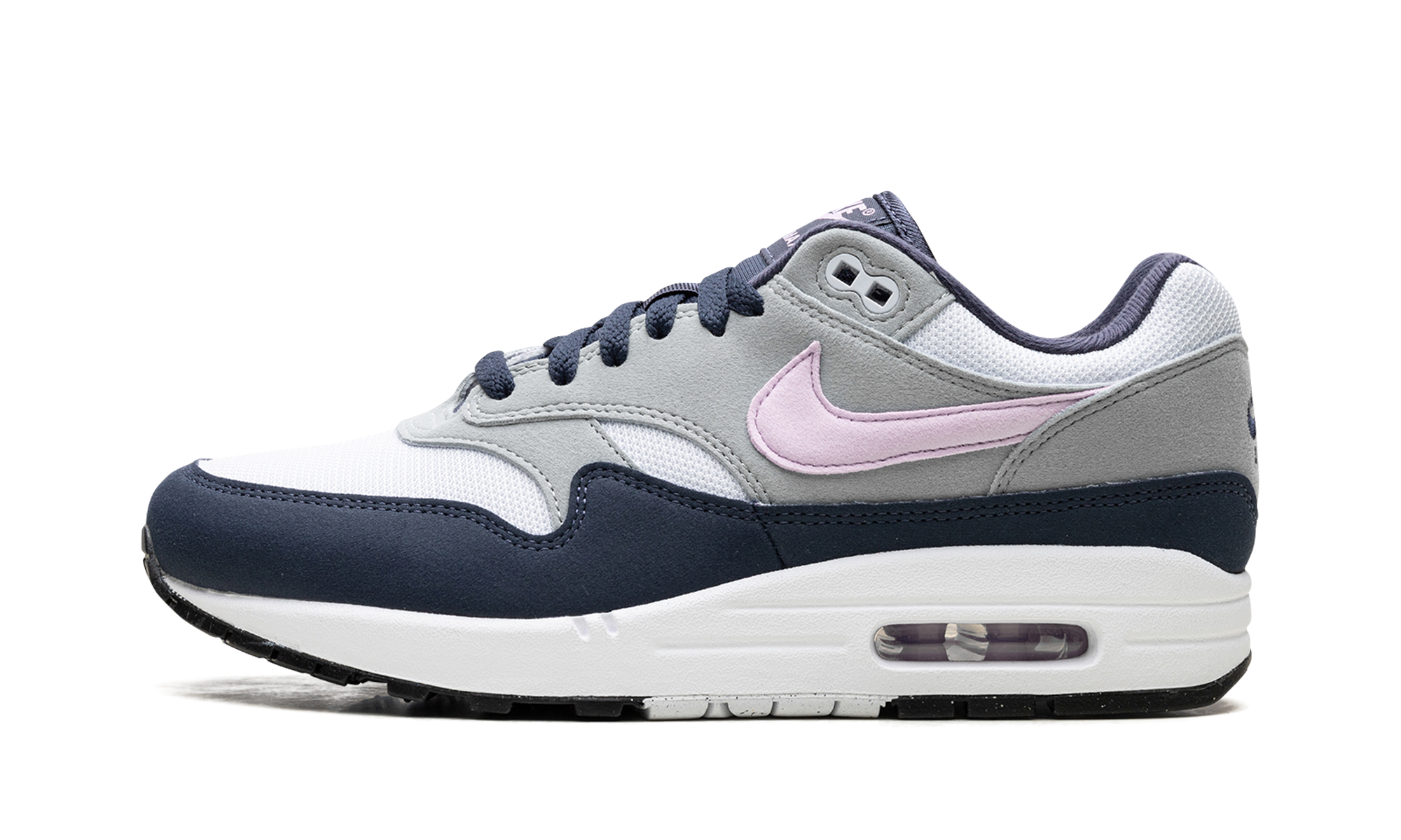 The Nike Air Max 1 "Lilac Bloom" is an eye-pleasing colorway of the retro running shoe. The Air Max 1 in “Lilac Bloom” features a white mesh upper with felt overlays in Football Grey and Obsidian. A Lilac Bloom-colored Swoosh appears on the sides and Obsidian-colored “Nike Air” branding is embroidered on the heel. A Lilac Bloom “Nike Air Max” logo is found on the dark blue tongue tag on the matching mesh tongue. A pink-tinted Air unit appears in the heel of the white foam midsole. Lilac Bloom