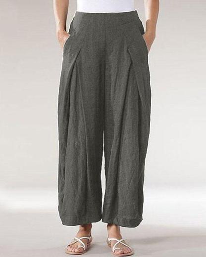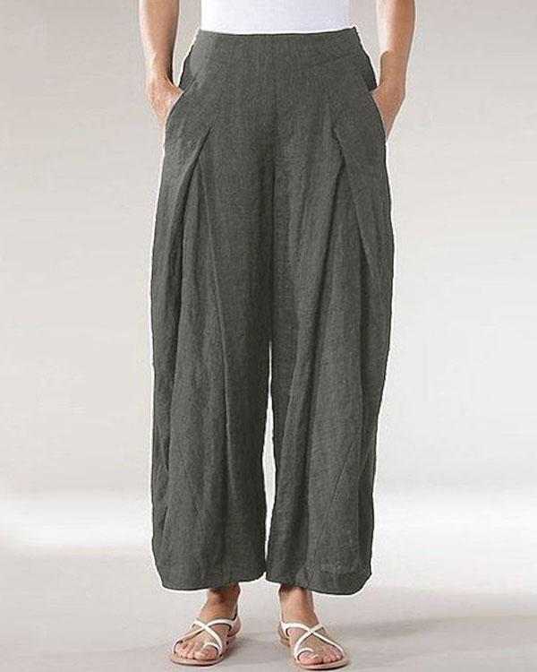 Casual Solid Patchwork Wide Leg Linen Pants